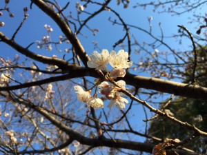 野球場の横に一本だけ植わっている桜が咲き始めました。