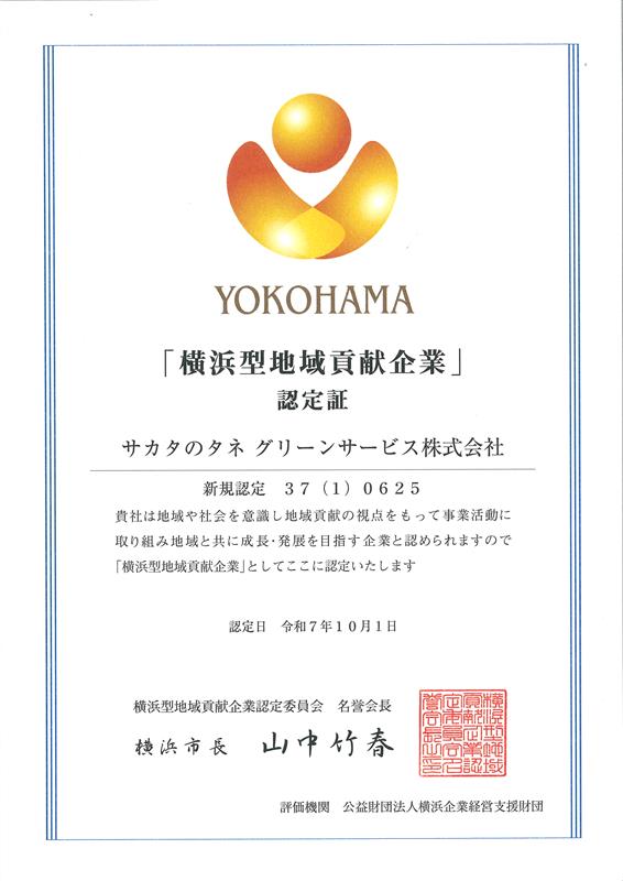 「横浜型地域貢献企業認定制度」は、横浜市内で地域社会に貢献する活動(CSR)に積極的に取り組む企業を認定する制度です。